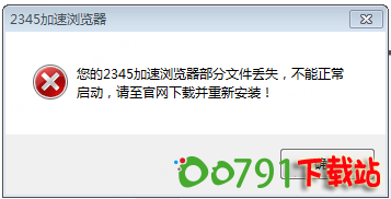 电脑2345提示浏览器文件丢失,无法启动...