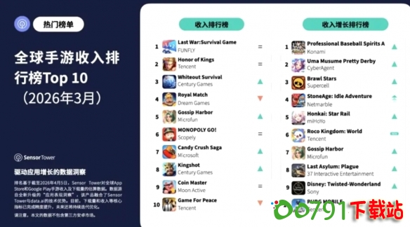 全球手游排行榜2026年3月下载前十名
